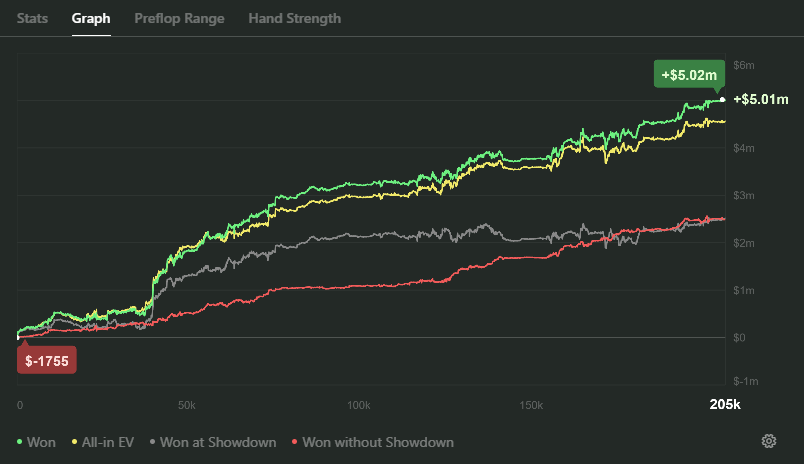 But check this out: This is a sample of 4 of the best red line crushers at high stakes. (Andrew Graham, Taisto Janter, Linus Love, Markkos Ladev)