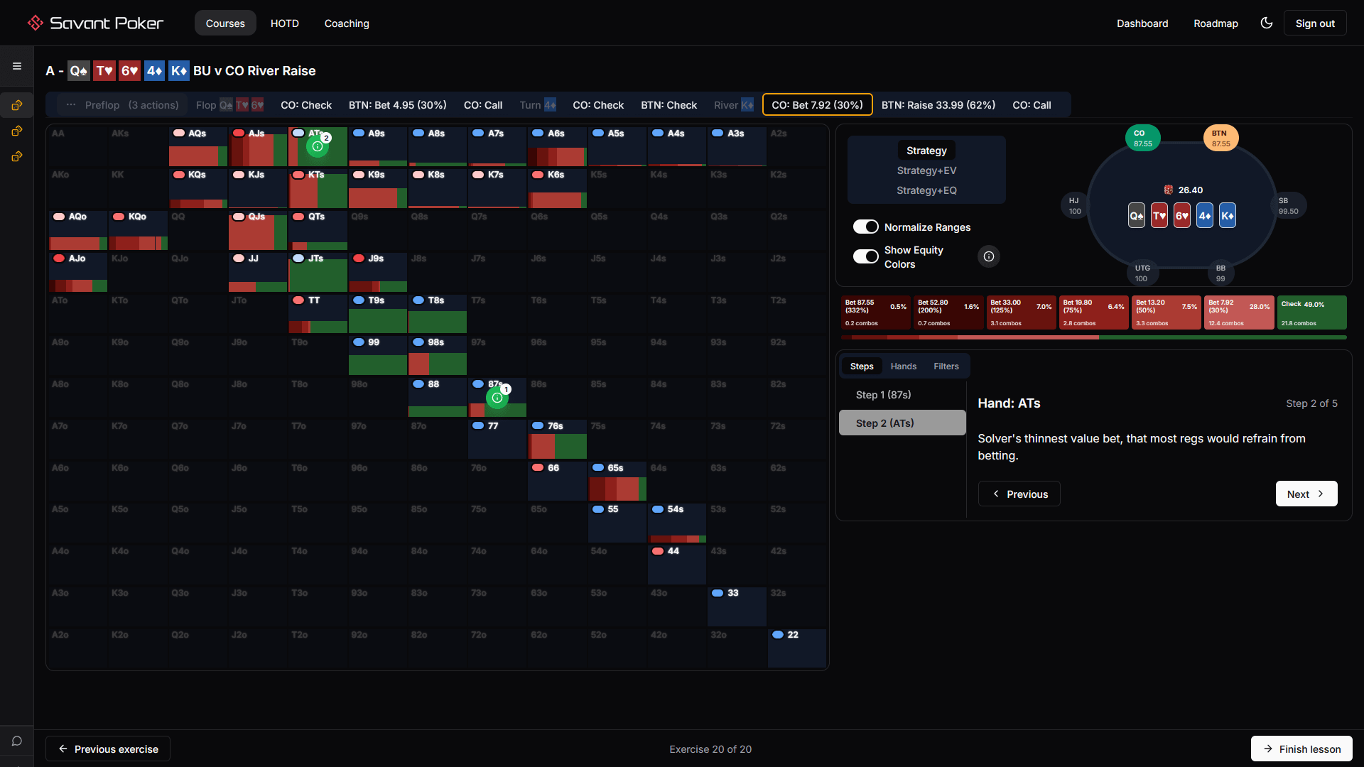 ATs: solver's thinnest value bet, which most regs would refrain from betting.