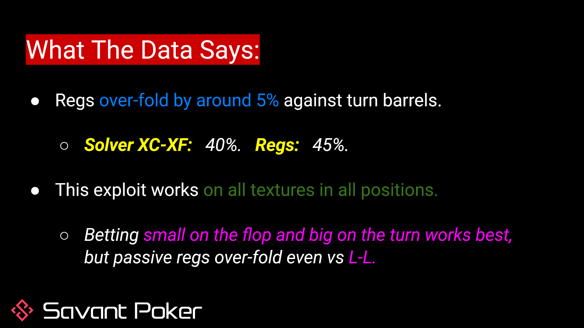Following up on this, I have one more simple 3bet pot exploit to share: barreling more often on the turn with bluffs.